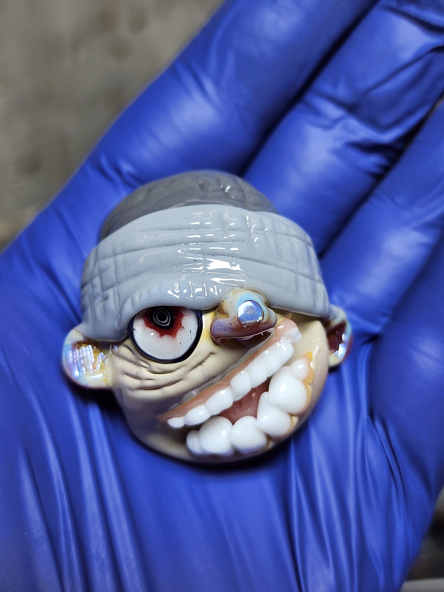 Handmade, sculpted glass pendants.
